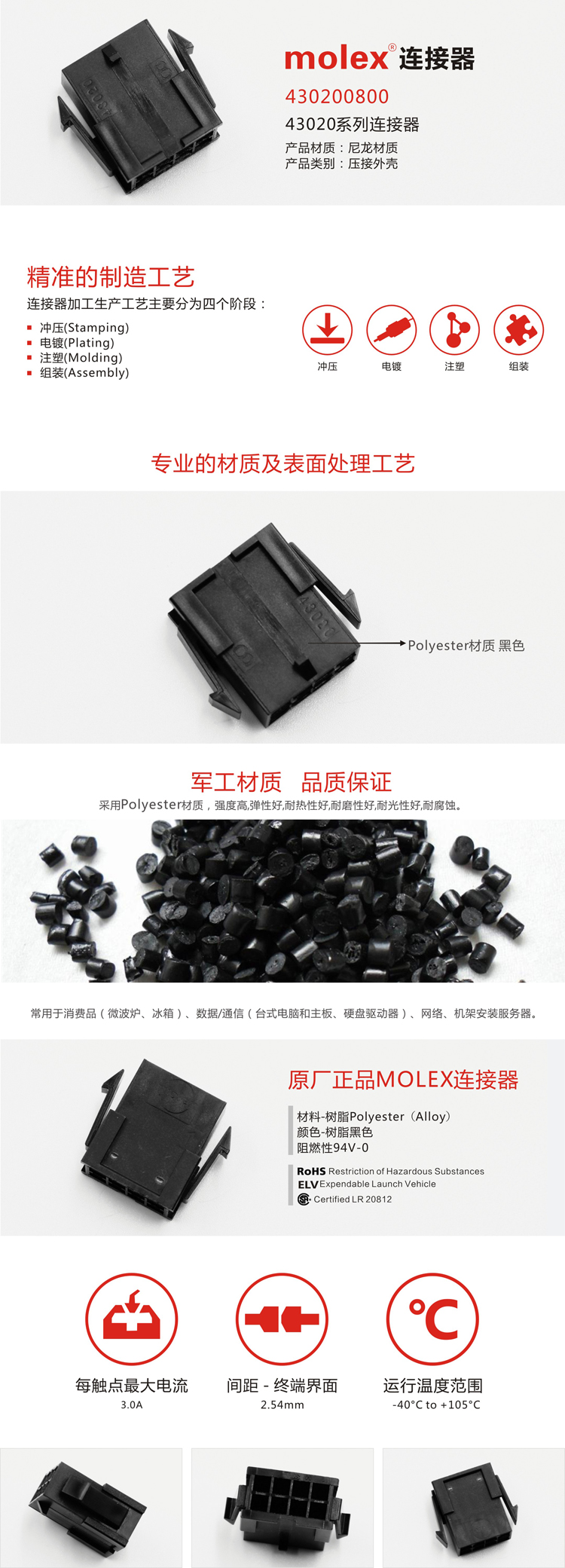 规格型号:43020-0800 8路-双排-悬浮插座-3mm节距