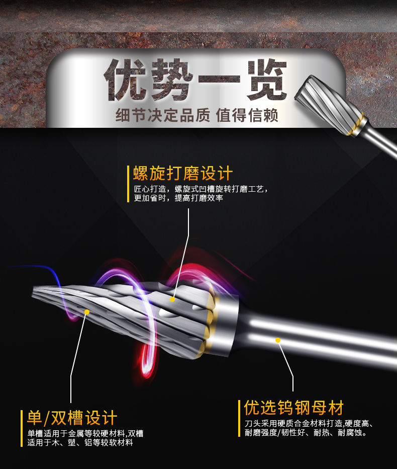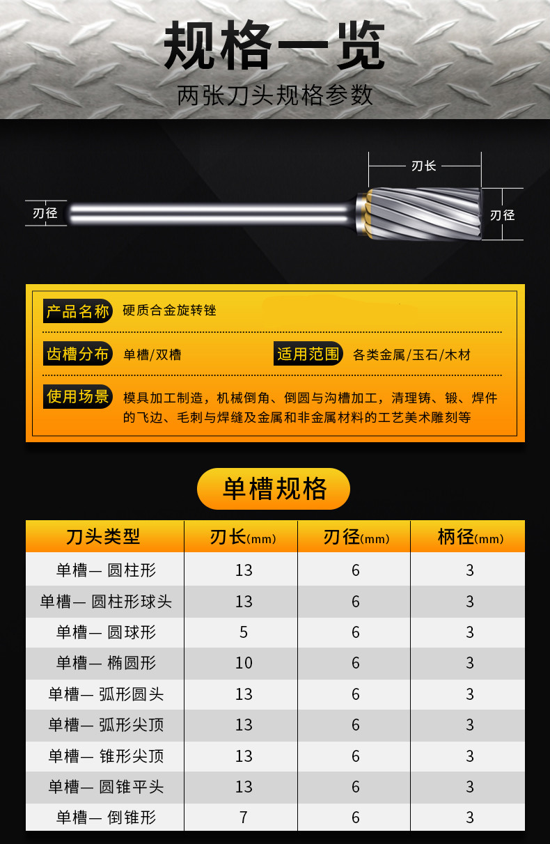 规格型号:刃部φ6*杆部φ3,F型单槽刃长15