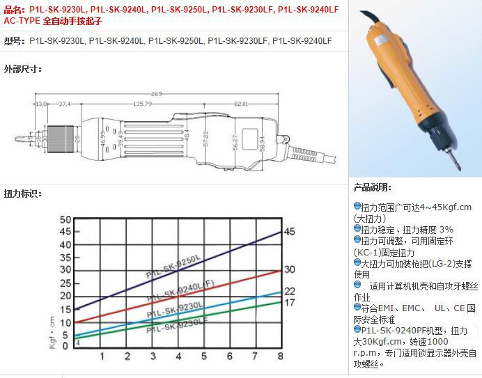 采用美,日高科技DC高性能伺服无碳刷马达,配合强磁铁,马达起动快,电流小,升温低,可长时作业,起子内部无需保养。