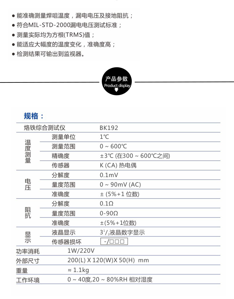 商品名称:BK192烙铁性能测试仪 Bakon白光